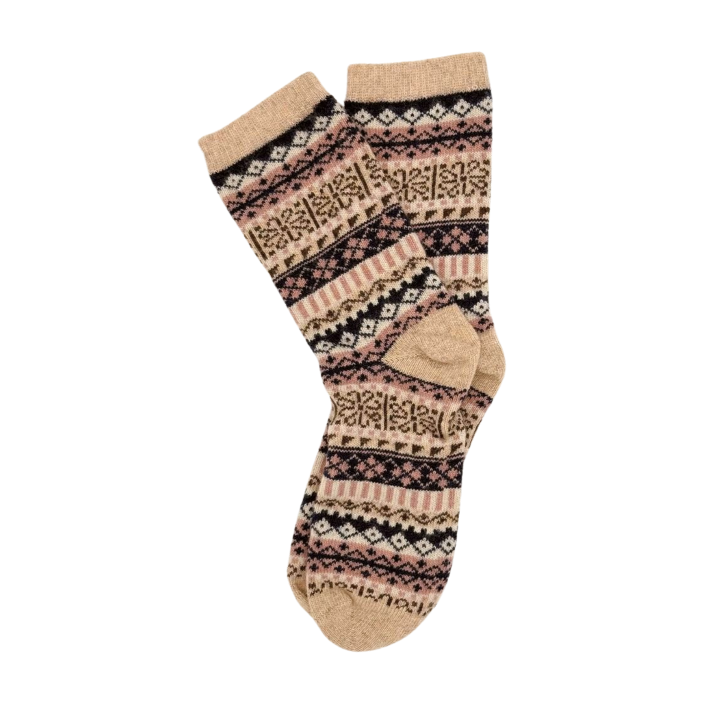 Calcetín de invierno con diseño jacquard y alma nostálgica. Confeccionado artesanalmente en la Unión Europea con un 80% de lana merino, estos modelos ofrecen abrigo, suavidad y un punto de estilo clásico actualizado. Cada diseño tiene su propia personalidad.