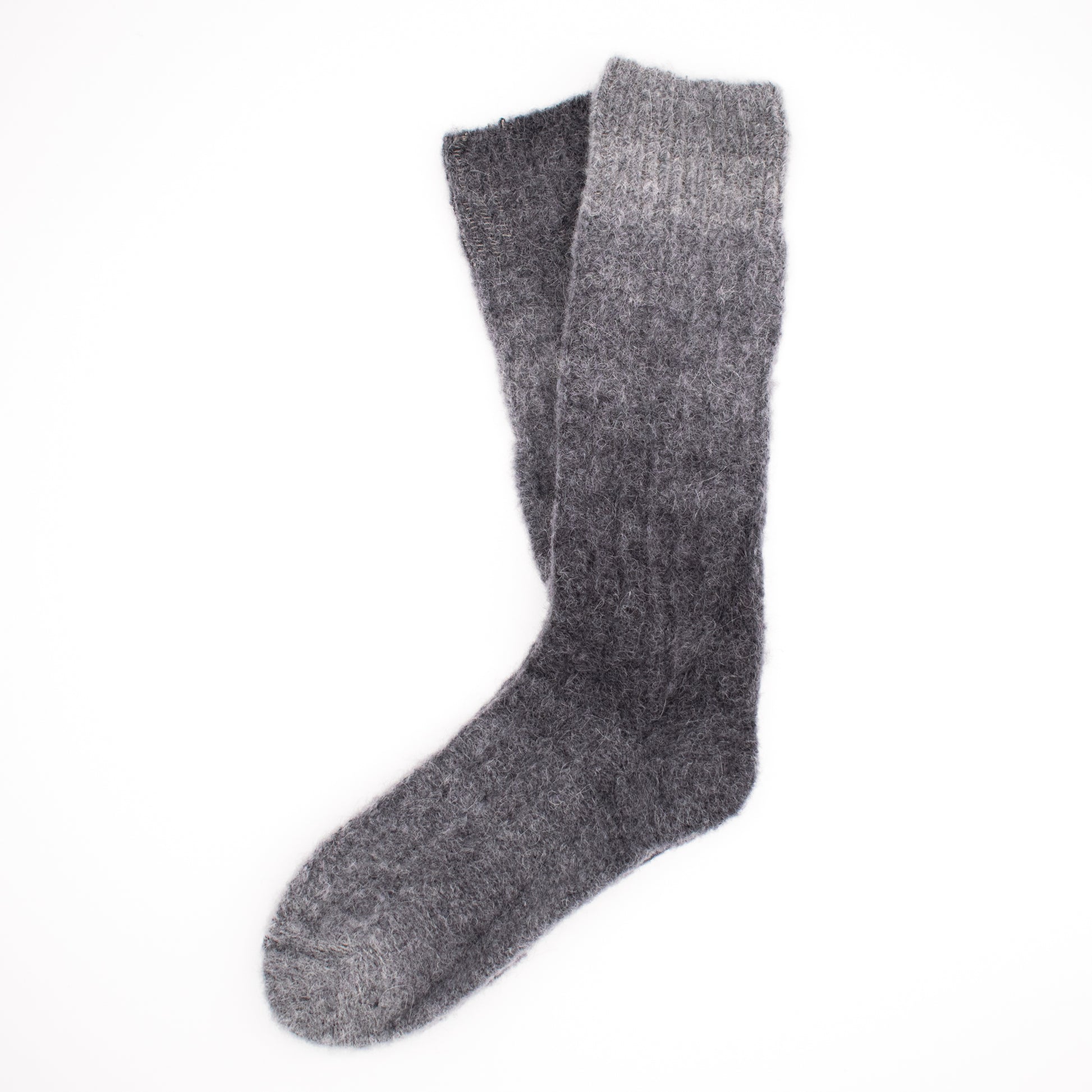Calcetín de invierno con mezcla de lana mohair, fabricado artesanalmente en Portugal. Con un tacto ligeramente esponjoso y una alta capacidad térmica, es perfecto para los días fríos o para quienes buscan una sensación natural y cálida al caminar.